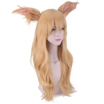 Women Cute Cosplay Long Straight Blonde Gold Hair Ears Women Anime