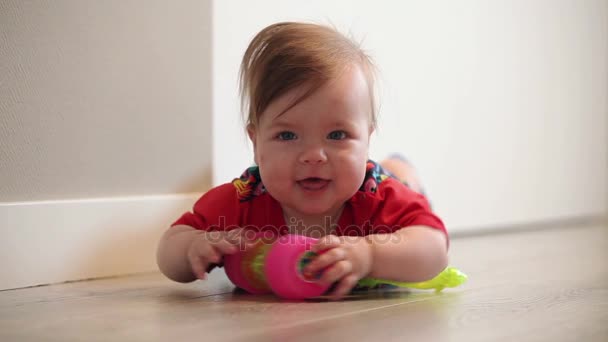 Baby Girl Blue Eyes Blonde Hair Looking Cam Laughing Stock Video
