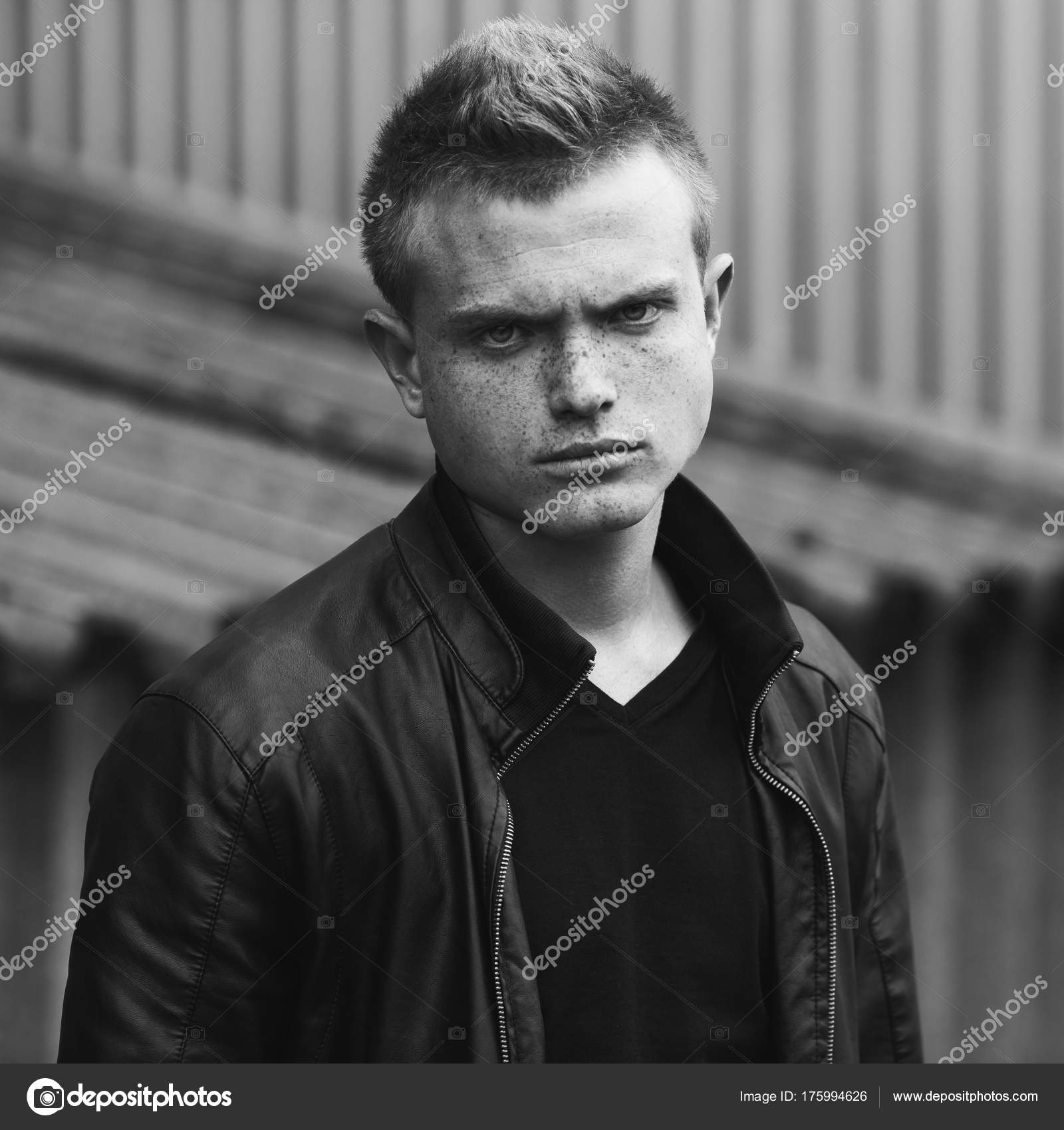 Bad Boy Concept Portrait Young Handsome Man Short Blond Hair