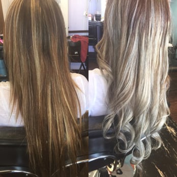 Before And After A Light Frosted Blonde Balayage Amazing Work Yelp