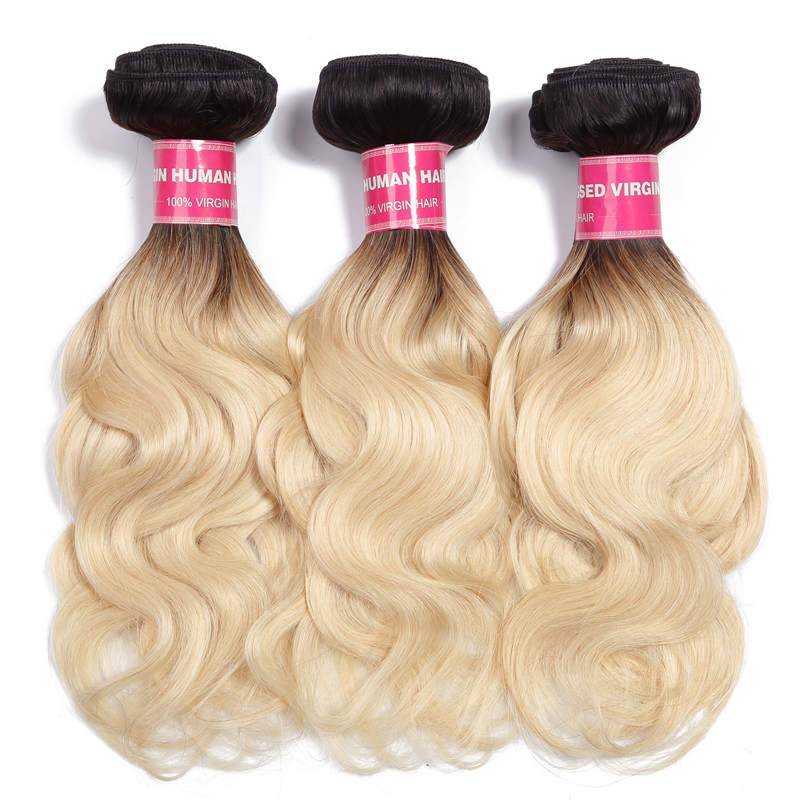 7a Grade Dark Root Blonde Ombre Two Tone Body Wave Hair Weaving