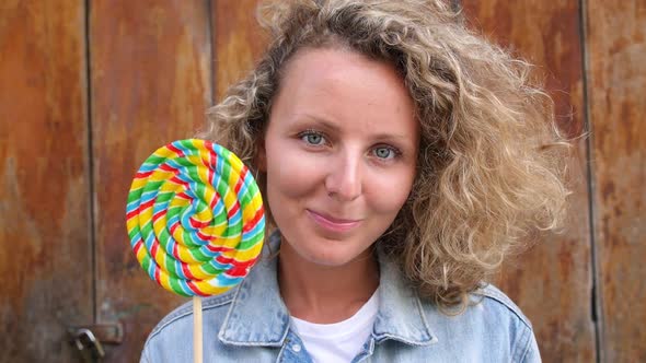 Caucasian Little Girl With Makeup And Long Blonde Hair With Pop