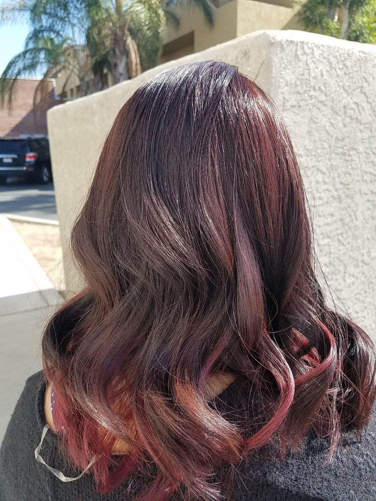 Mahogoney Color On Dark Brown Black Hair Bleached On The Bottom