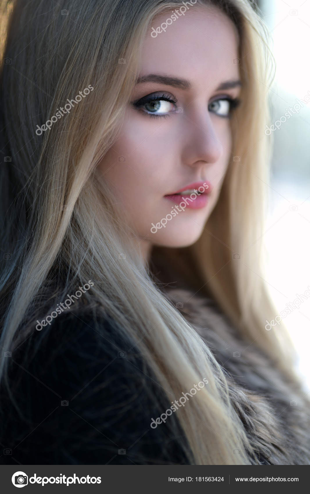 Nice Young Woman With Makeup And Blonde Wavy Hair Portrait Of Cute