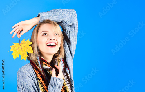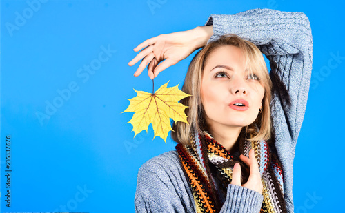 Autumn Autumn Portrait Of Blonde Hair Woman With Maple Leaf