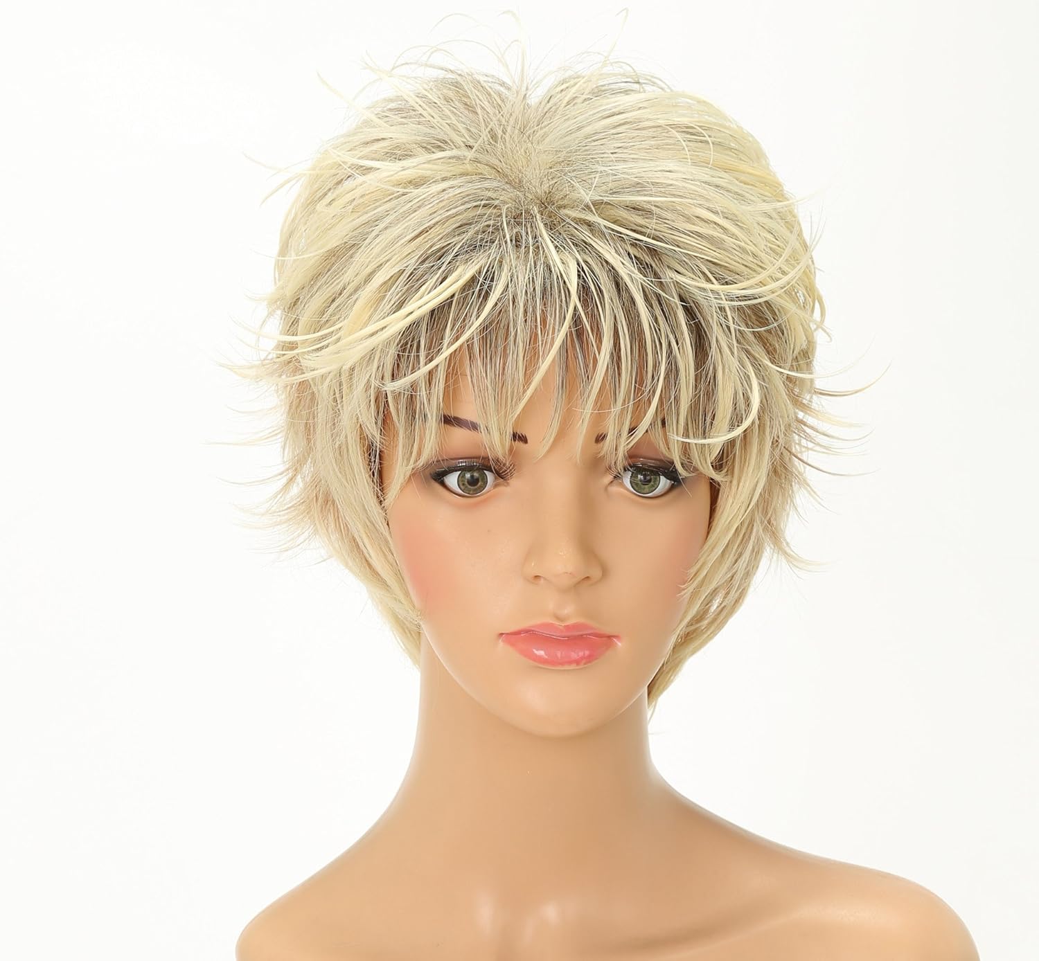 6 Synthetic Short Blonde Hair Wig Dark Root Female Pixie Cut Wig
