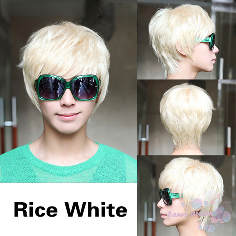 Platinum Blonde Short Cosplay Wigs For Men Korean Handsome Boy