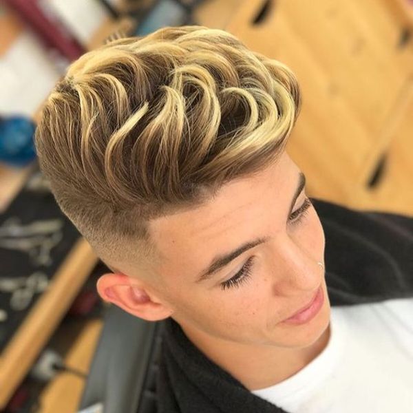 This guys with dyed blonde hair style is a unique style where the highlights add more texture to the hair.